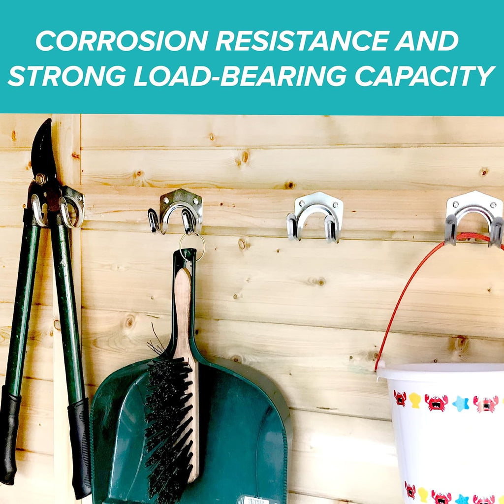 • The hooks have pre-drilled holes allowing easy installation on the walls of your garden sheds, garages and workshops.